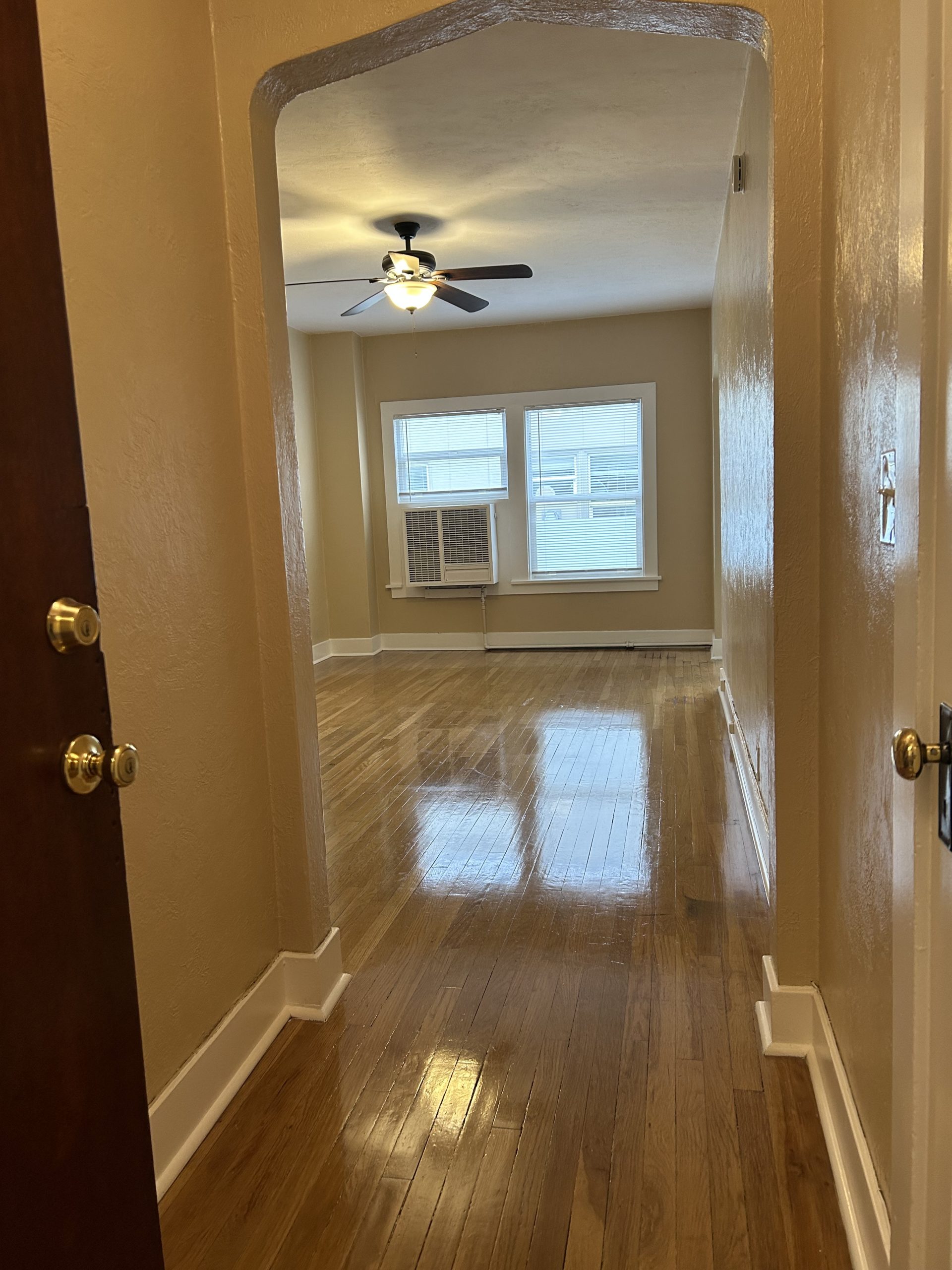 One-bedroom apartment with livingroom, bedroom, kitchen with vintage tile, dining nook, and two closets. Gas stove and heat. Sunny, quiet corner apartment. Hardwood floors, free wifi.